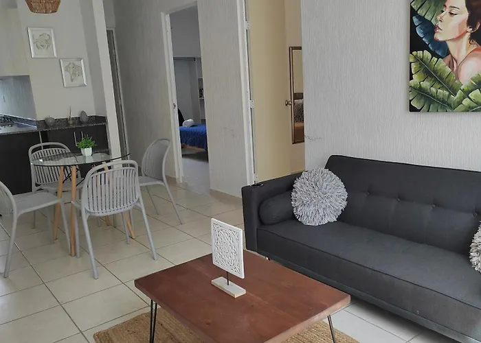 The 72 m² Lugar Lindo Y Acogedor En Playa Apartment Playa del Carmen boasts views of the garden and is located 3.9 km from the Nuestra Señora del Carmen Catholic Church. Guests can benefit from bicycles available for rent.